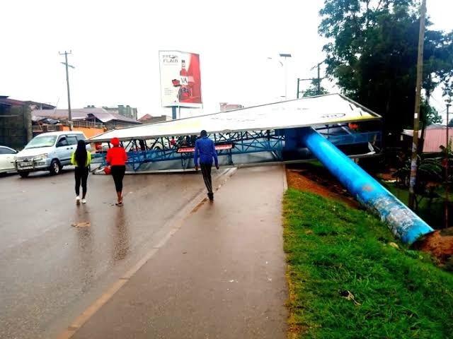 In October 2023, a significant incident occurred in Nansana when heavy rains caused five giant billboards to collapse. One of these billboards fell directly onto a parked taxi at the Lubigi police post